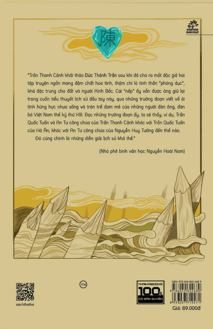 [Thaihabooks] Tiểu thuyết lịch sử ĐỨC THÁNH TRẦN của nhà văn Trần Thanh Cảnh chính là diễn giải của tác giả về vương triều Trần lẫy lừng ba lần kháng Nguyên toàn thắng, nhất là về cuộc đời và sự nghiệp của một trong những nhân vật hiển hách nhất thời đại: Hưng Đạo Đại Vương Trần Quốc Tuấn.