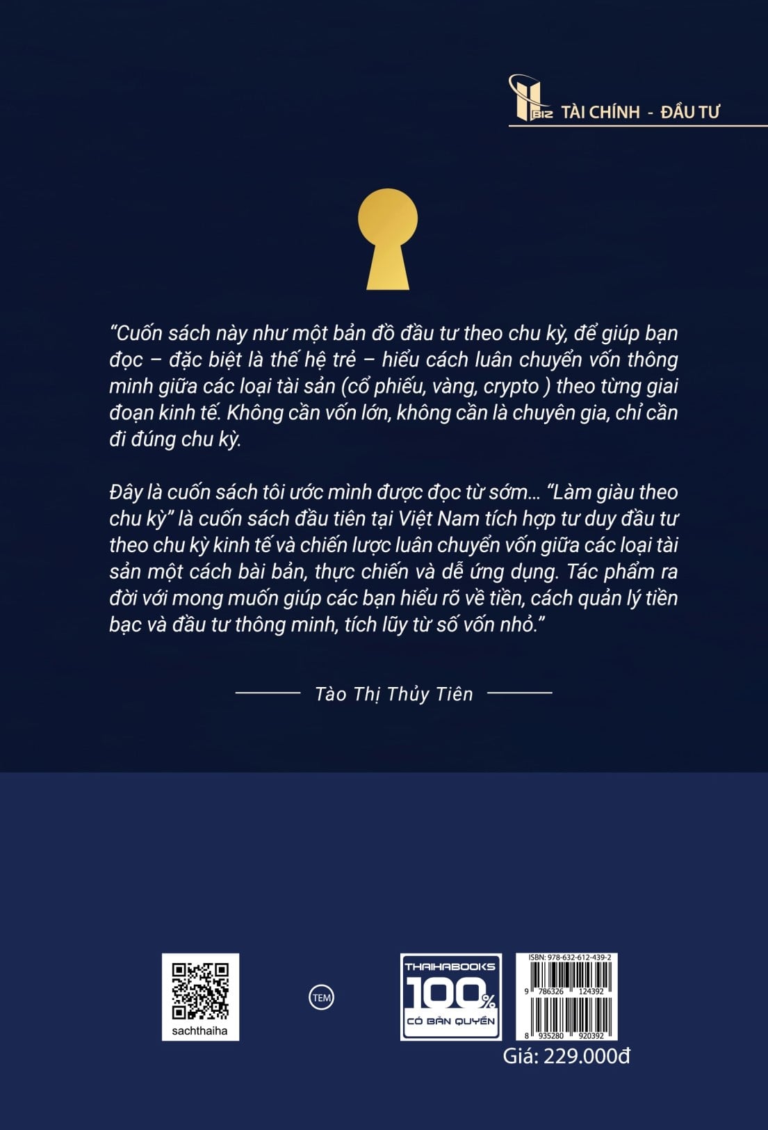 Đây là cuốn sách đầu tiên chia sẻ chiến lược đầu tư theo chu kỳ kinh tế một cách hệ thống, an toàn, và ứng dụng riêng cho thị trường Việt Nam. Sách sẽ cung cấp góc nhìn toàn diện để bạn biết khi nào nên giữ tiền mặt, khi nào nên rót vốn vào vàng, cổ phiếu hay cryptocurrency, giúp bạn không còn “đầu tư theo cảm tính”.